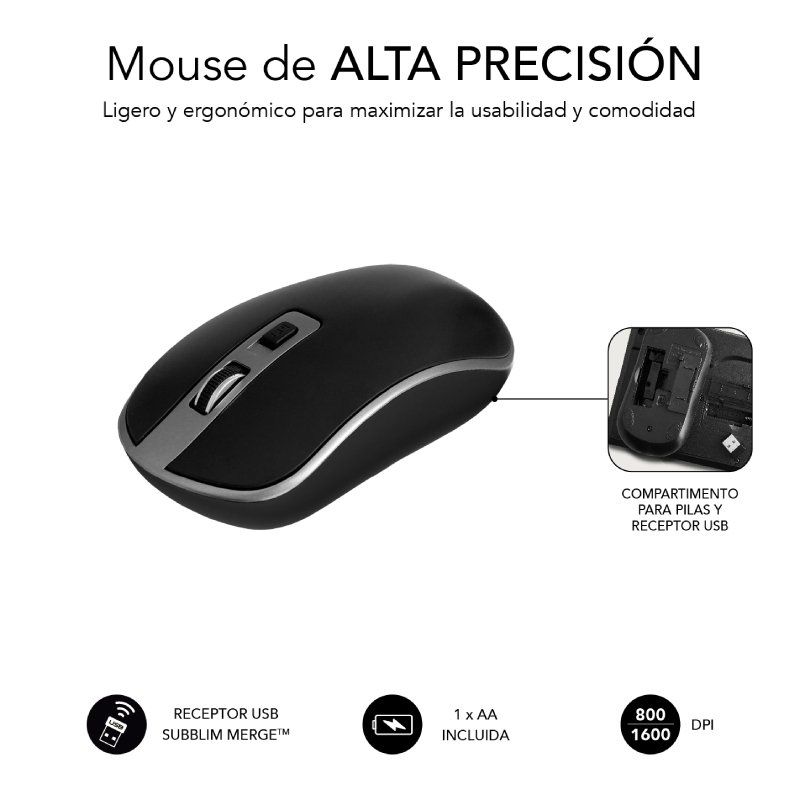 • Conector USB Subblim Merge que conecta el ratón y teclado de forma simultánea con un único receptor.