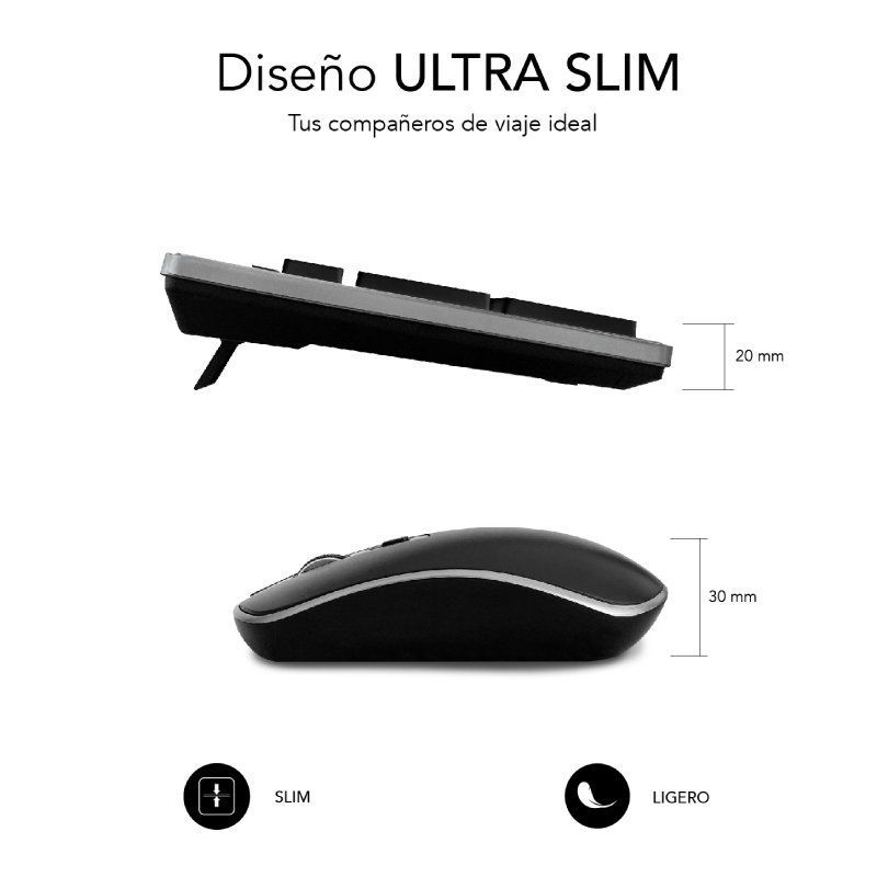 La combinación de Teclado y ratón inalámbricos SUBBLIM ERGO, te proporciona una precisa y confortable escritura gracias a su ergonomía en las teclas cóncavas y la forma del ratón contorneada. Además, tu escritorio será mucho más elegante por su combinación de colores que harán juego con el resto de elementos creando un espacio de trabajo ideal. Todo ello sin ruidos incómodos gracias a la tecnología Silent Keys utilizada en las teclas y los botones.