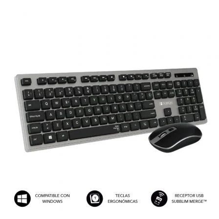 Teclado y Ratón Inalámbrico Subblim Combo Wireless Ergo Keys Silent Flat HQ/ Gris y Negro