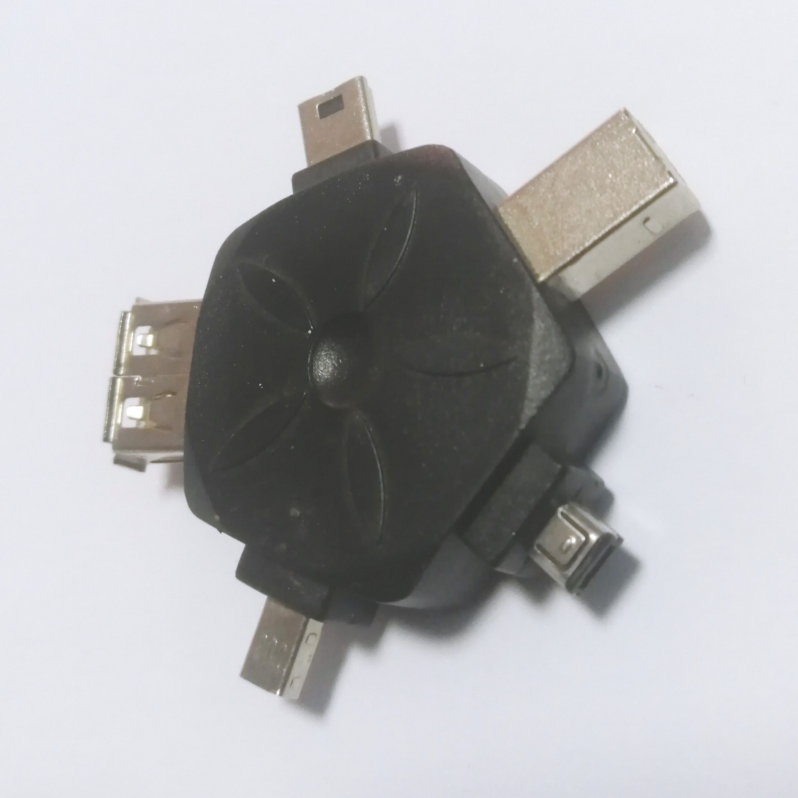 Adaptador USB Hembra en estrella con conectores USB tipo B Macho, Mini 5 pin Macho, Hirose 4 pin Macho y Mitsumi 4 pin Macho.